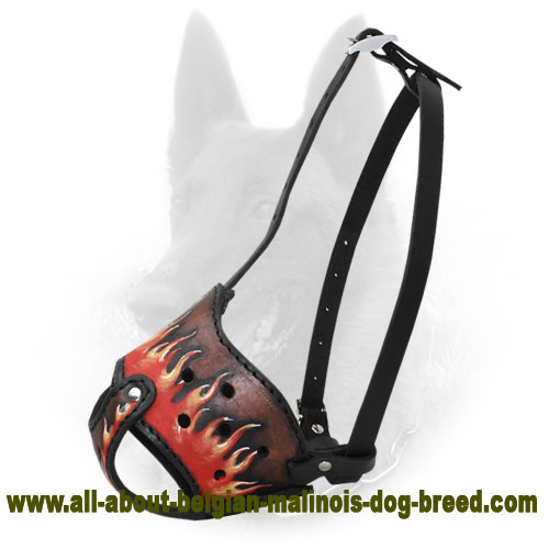 If you don't want to have problems with aggressive behavior of your dog, then you should pay a great attention to his socializing. And the dog's training equipment has a profound influence on this process. That is why, such an important thing as muzzle should be of high-quality and assist you in training your pet. We are glad to introduce you this high-end leather Muzzle for your beloved Belgian Malinois with unique and extraordinary design!